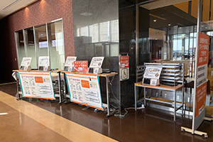 まずは入口付近でマイナ保険証の認証をしてください。使い方がわからない場合はお近くのスタッフへお声がけください。